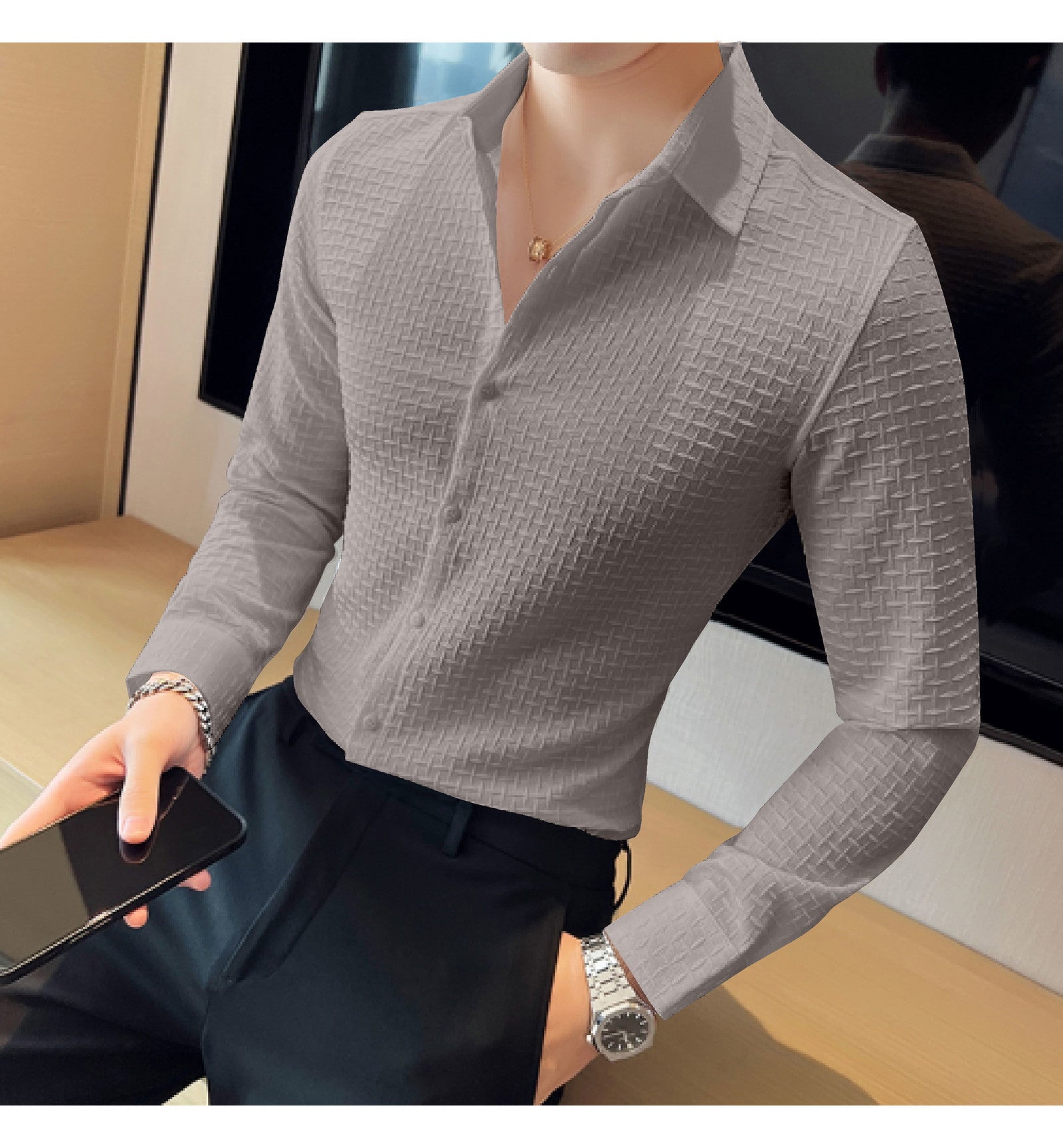 Grey Checks Structured Premium Shirt