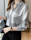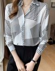 Women's Printed Cotton Silk Long Sleeve Collar Neck Tunic Shirt
